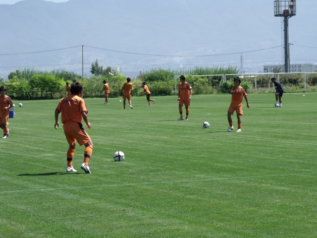 芝生グラウンドで早速練習し、明日に備えていました。