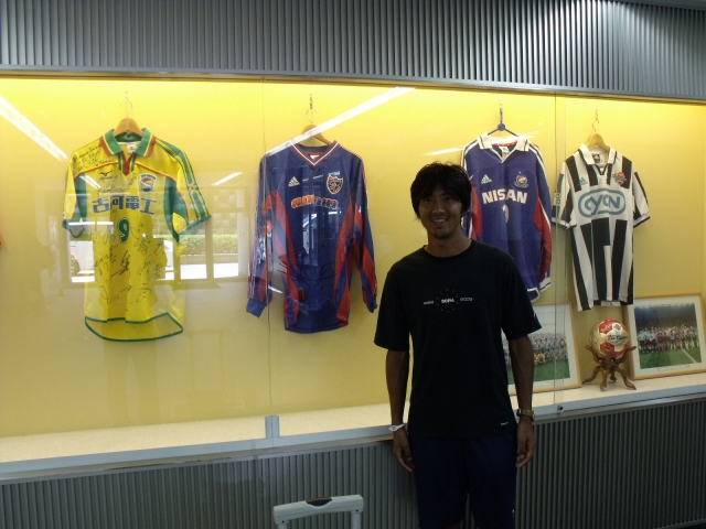 V・ファーレン長崎のMF №28 佐藤由紀彦選手 実は9年前、アルウィンで試合をしたことがあるそうです。 2001年9月 FC東京 vs ジェフ千葉の試合 その時のサイン入りユニフォームがアルウィンの展示ケースに 飾られています。 9年ぶりに自身のサインと再会 「このときはFC東京で14番つけてました」 とさわやかな笑顔の佐藤選手。 試合は山雅に勝ってほしいですが、 佐藤選手には活躍して欲しいなあ・・・と思いました。