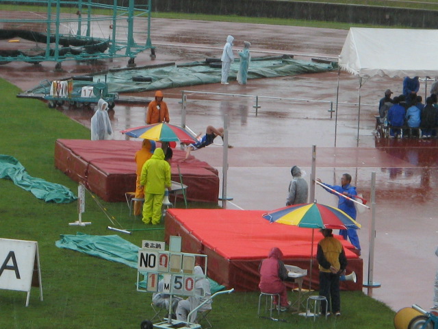 陸上競技って雨でも開催するのですね。知りませんでした。