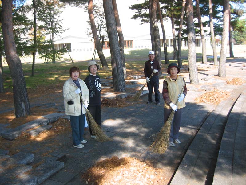 11月7日(水)、長野県老人大学松本学部のみなさんが、やまびこドーム周辺で落ち葉などの清掃を行いました。これは老人大学ボランティア体験学習の一環で、約50名の方で清掃をしていただきました。本当にありがとうございました。