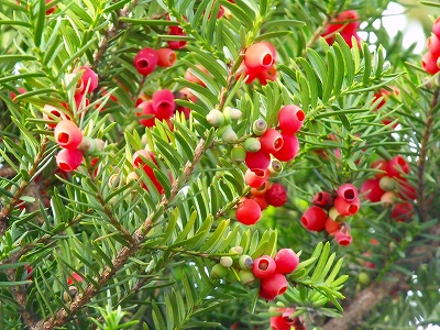 イチイの実がまるでルビーのようですね。イチイは『アララギ』『オンコ』