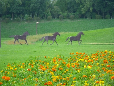 遠くを駆け抜けるオブジェの馬だって、風をまとってペガサスのようでしょ。
