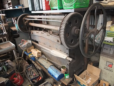 屋根になる部分のアルミ板を鉄板を曲げる機械で曲げ