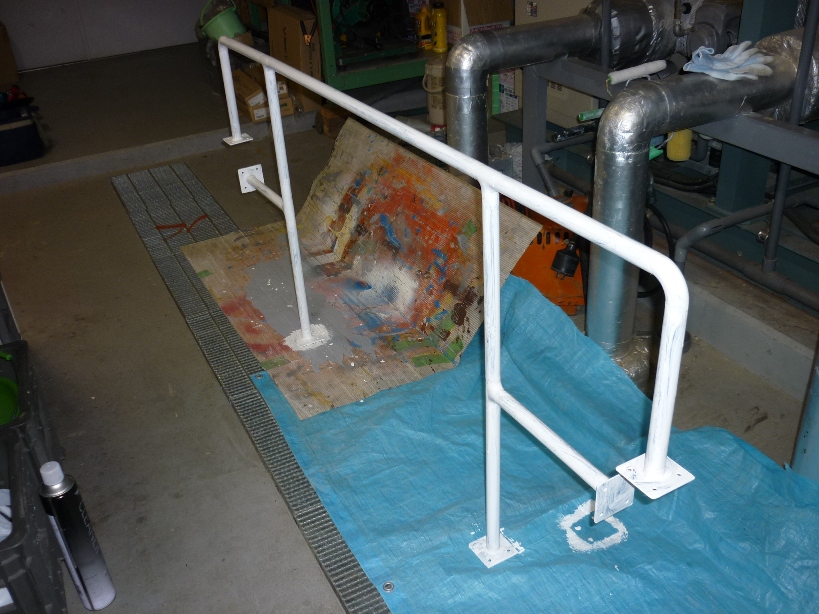 ポシェット等の引っ掛かりを防止する為、鋭角に取り付けられた手摺は取り外します。
