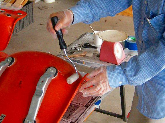 硬化剤を塗り重ねて修繕・補強をして、塗装し、設置するところまで