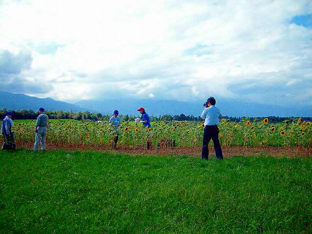 もう一枚の写真は、ひまわりの種を収穫してもらっているところです。