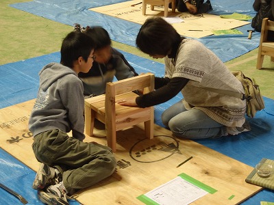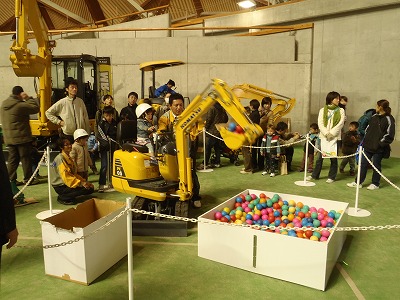 小さな子供が達建設用重機を楽しそうに操作しています。