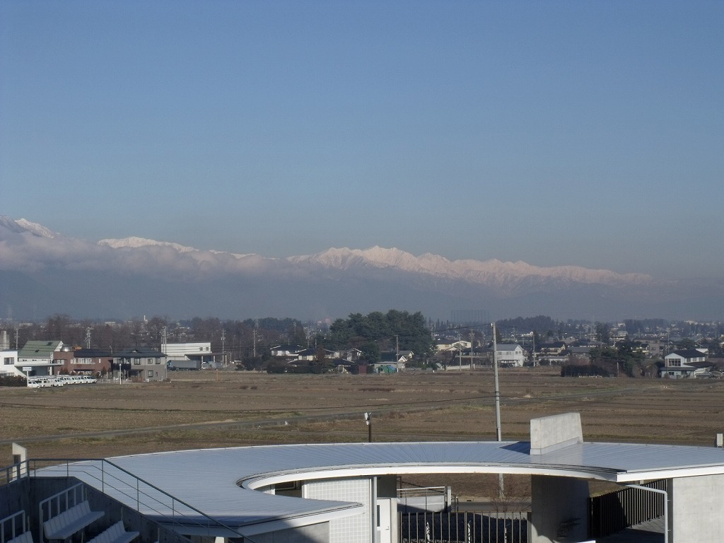 高い山はしっかり雪がついてます。