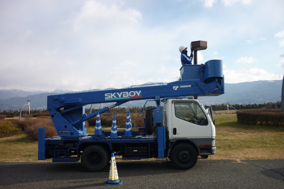 今日は、管理グループの仕事を紹介します。 街灯の電球交換です。 作業は、シアトルさんです。 高所作業車を使用し慎重に作業中です。 シアトルさんも気持ちを引き締めて ヘルメット・安全帯着用で、仕事をしています。 私は、見張りとお客様の誘導にあたっています。 声掛け合って絶妙のチームワークを発揮しています。 本日は、目いっぱいがんばってしまったので続きは明日シアトルさんです。 ラッキーパパ