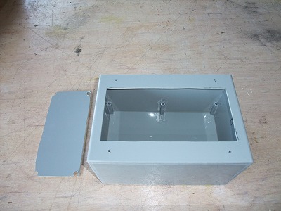 防水プルボックスの底を四角く切り抜きます。↓
