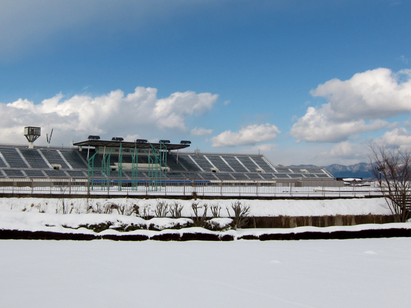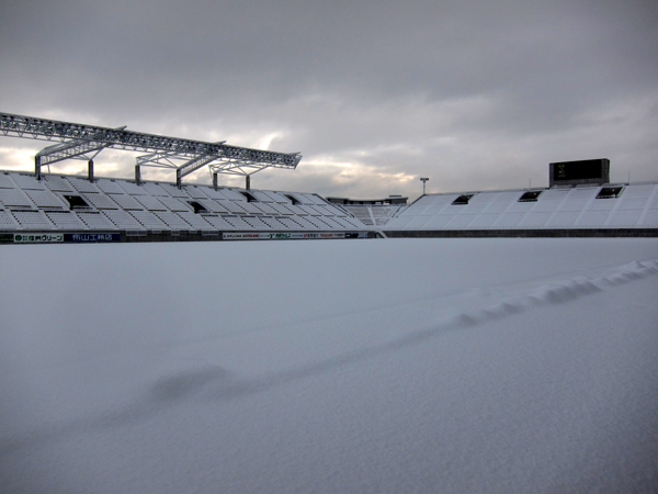 陸上競技場も雪景色