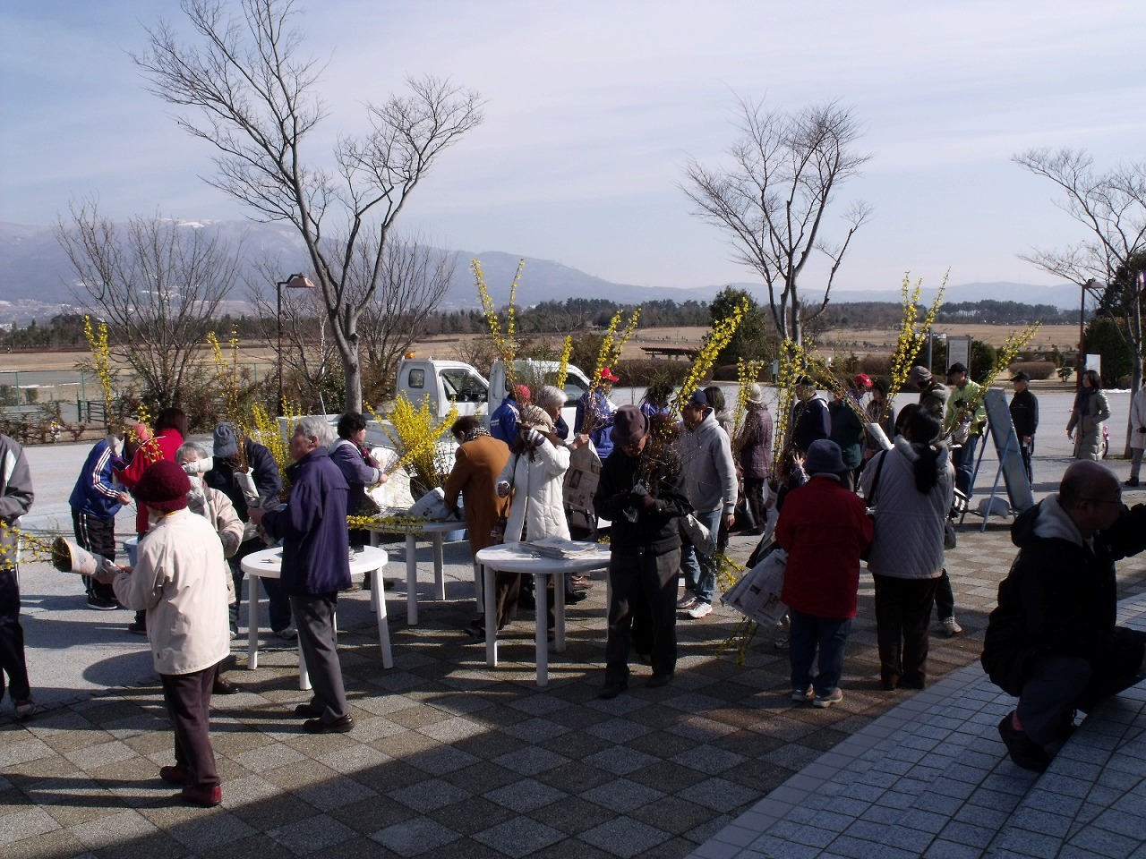 今年は、レンギョウ・ユキヤナギ・ヒュウガミズキの3種類をお配りしています。皆様是非ご来園いただき一足早い春を感じてみませんか。
