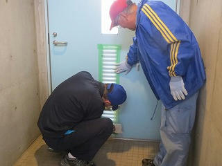 夜間入り口にある簀の子とこの緑のマットが綺麗になりました。