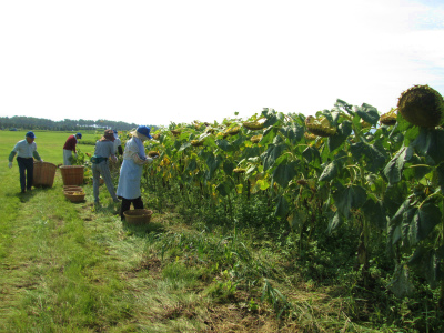 今年の夏を盛り上げた『ひまわり』の片付けを行いました。