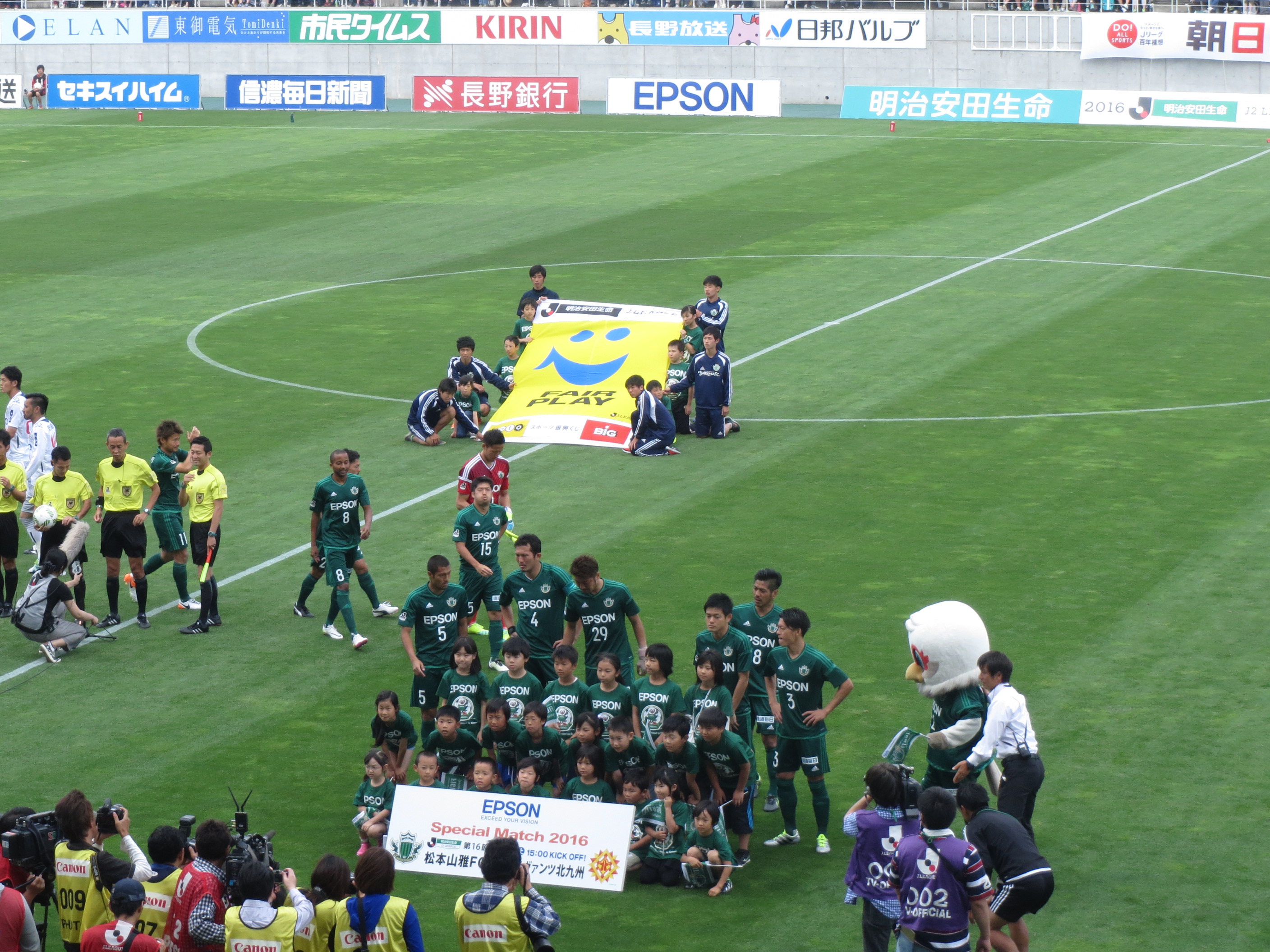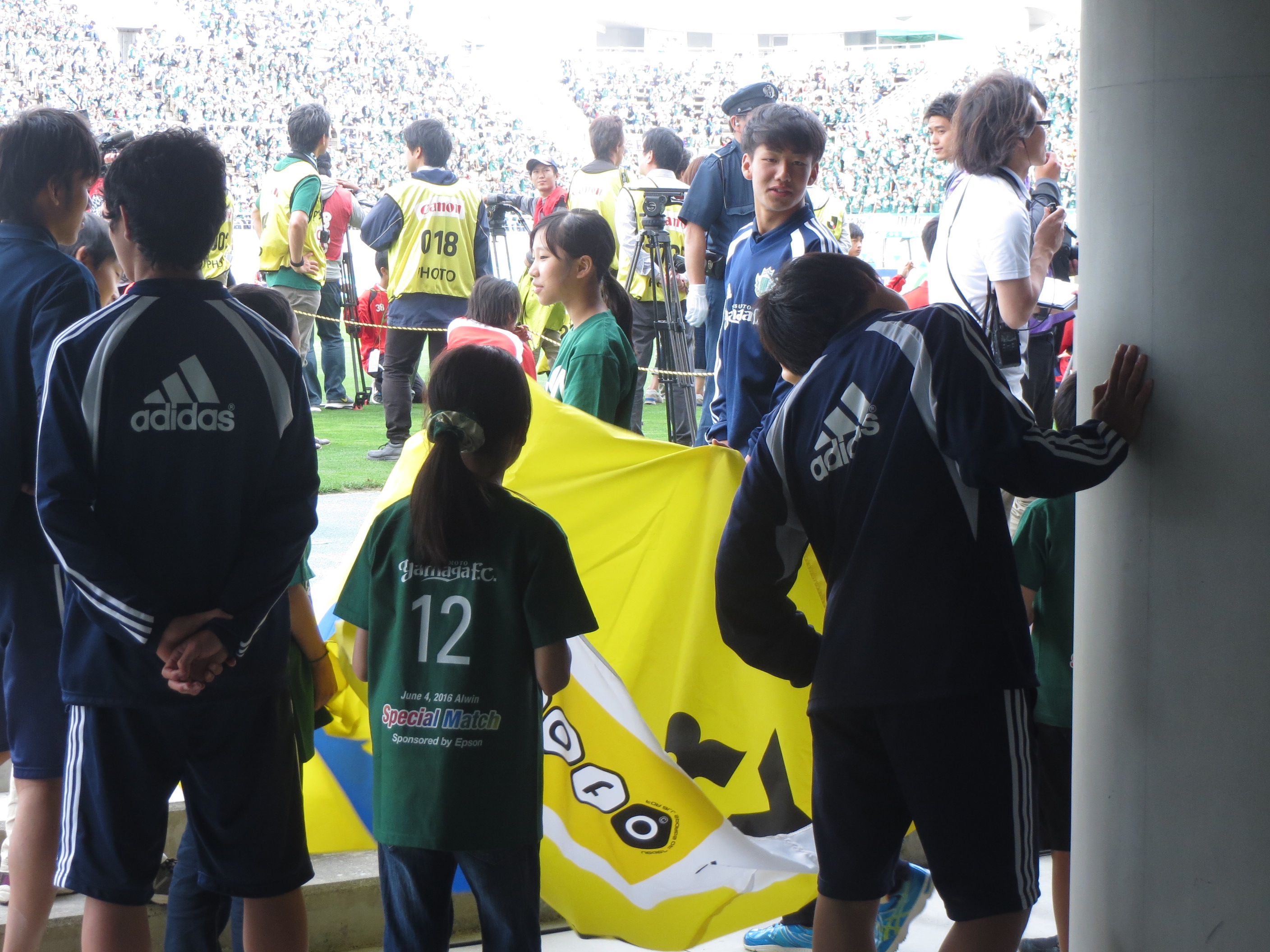 今日はテレビ放送もあり、カメラが多いせいかみんなすごく緊張しているようにみえましたが、選手たちとピッチに入った瞬間に今までの緊張が嘘のように笑顔と元気いっぱいになっていました!