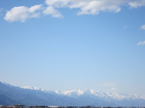 北アルプスも冠雪と西日とで