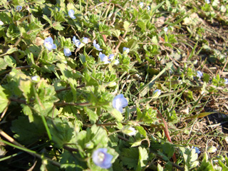 あまりの暖かさに、道端の草も早く目覚めてしまったようです。