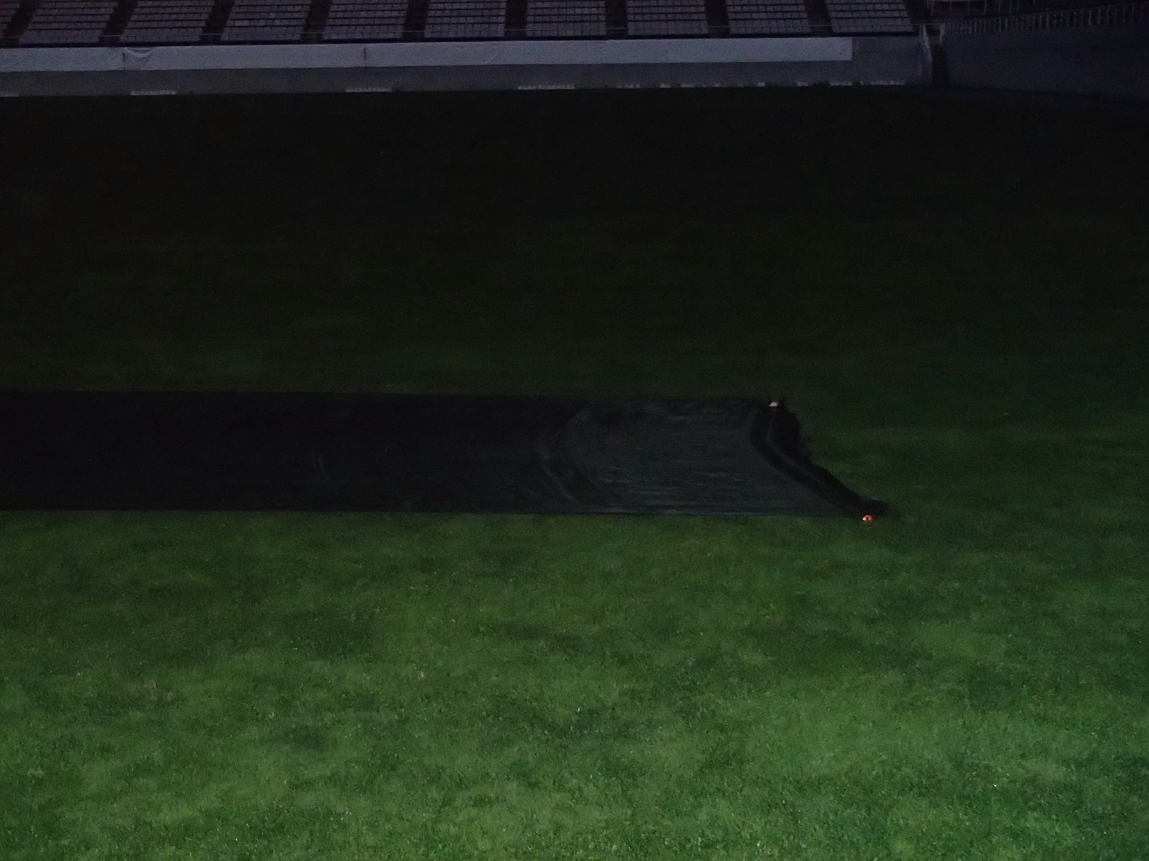 本日の体感はやや暖かく感じましたが・・・ 12月3日なんですよね。 まだ私の体感は12月を感じていませんが アルウインの芝は冬支度に入りました。 夕方撮影の写真では分かりにくいと思いますが、黒い寒冷紗です。 芝の掛布団に当たるのでしょうか? 植栽の担当に確認しときますね。 1.2.3.4