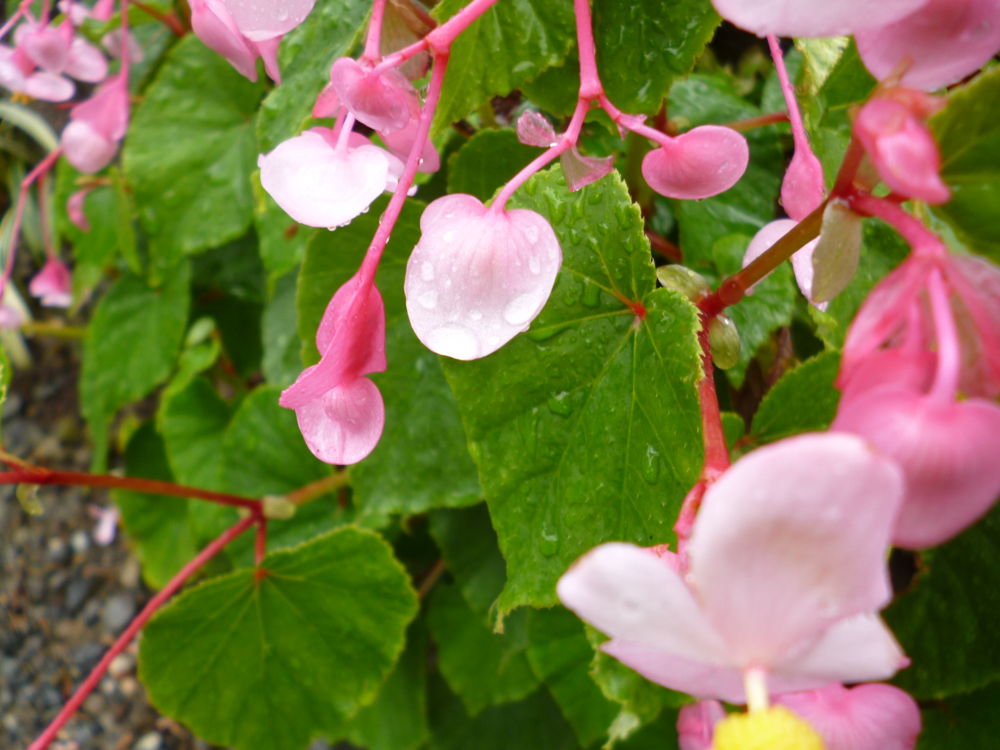 霧雨に 静かにひらく 秋海棠 秋草のいろ 淡く咲き初め T.A