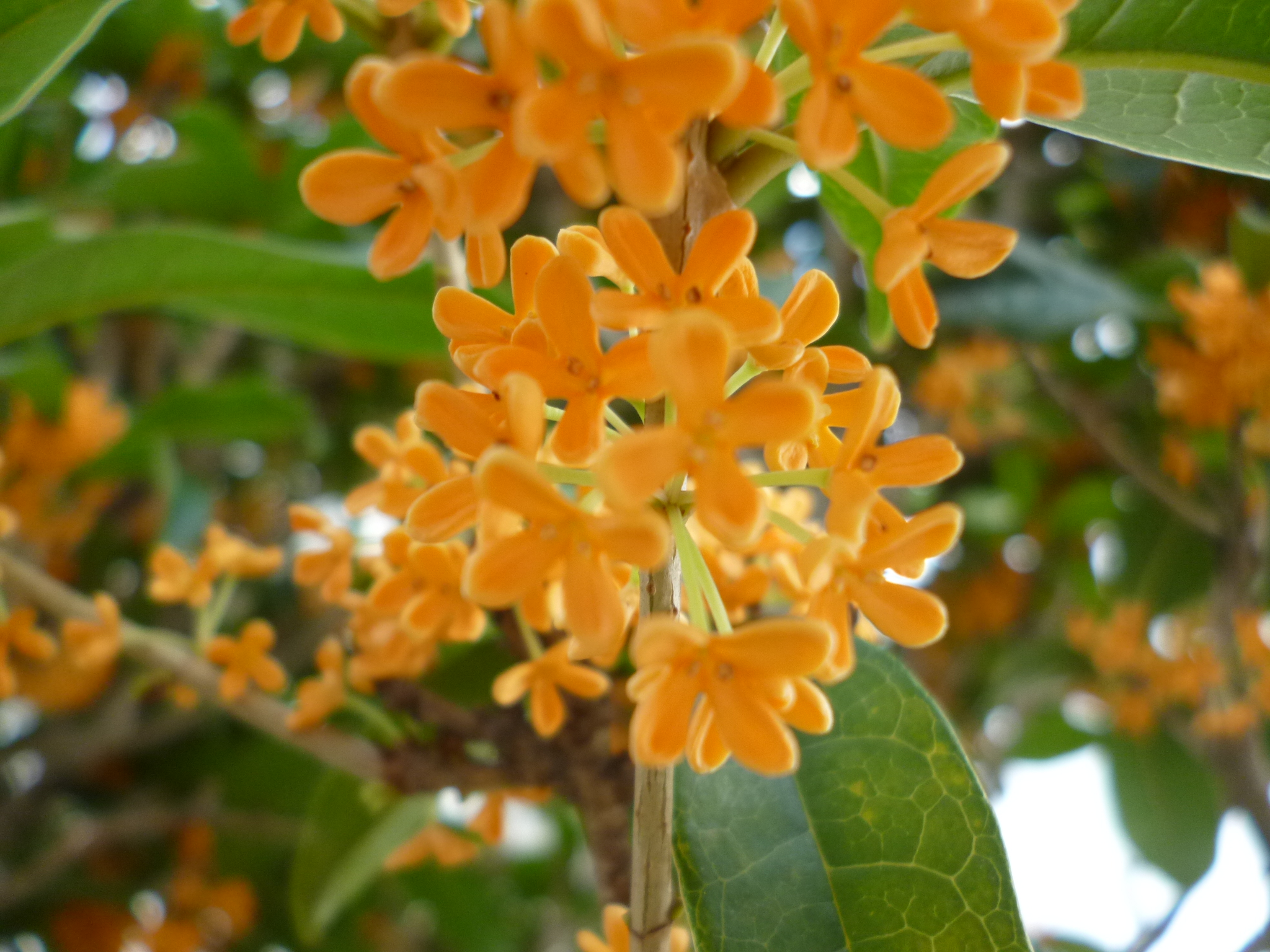 立ちのぼる香りにふと見るとキンモクセイがあざやかに咲いています。