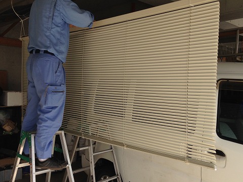 昇降用コードを通すという大変手間のかかる作業をしております。