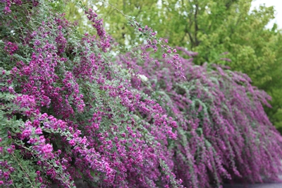スカイパーク陸上入口では、今年もハギの花が見事に咲いております。