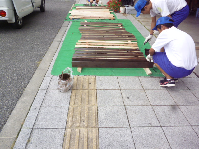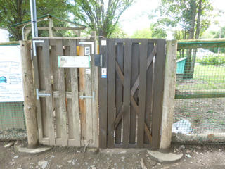 今回は、ドッグランの出入口扉の塗装を体験していただきました。