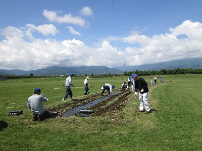 ヒマワリ・マリーゴールドの種蒔きや草取り作業を行いました↓