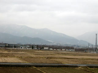 午後には雨も降りだし、周りの山々はうっすら白くなっています。
